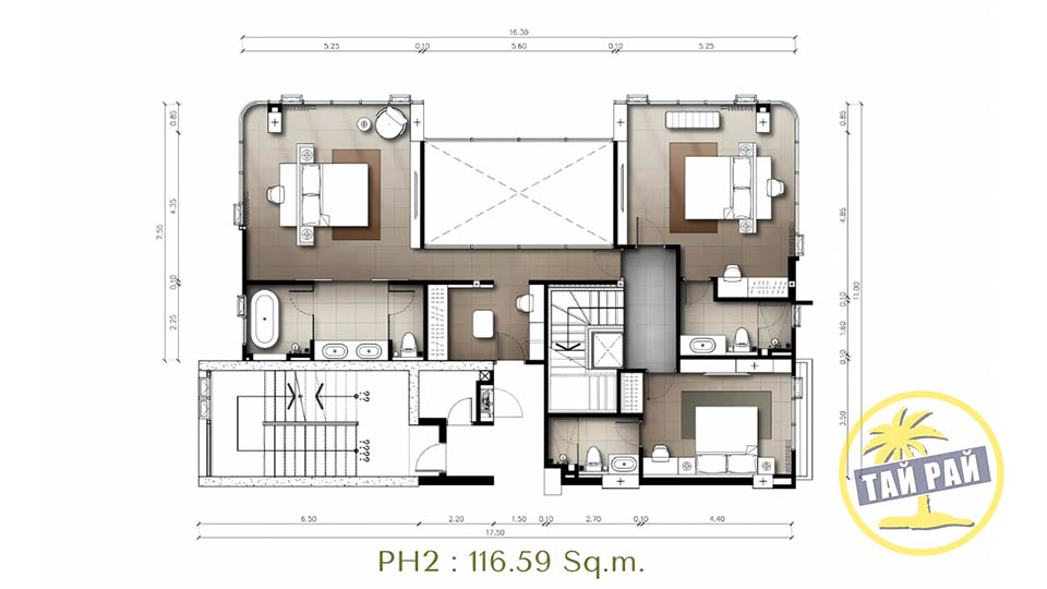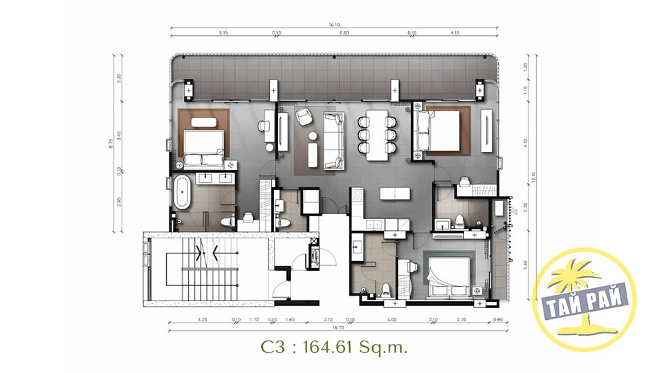 - 3 спальни (153-164 кв.м);