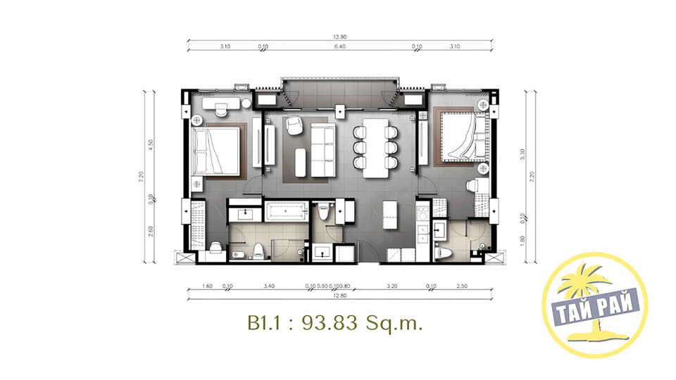 - 2 спальни (93-117 кв.м);