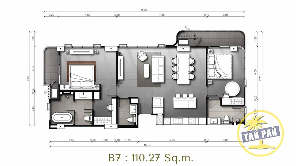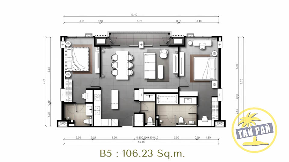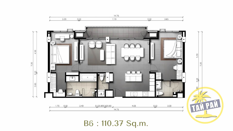 - Амортизационный фонд 700 бат / 1 кв.м. (разовый платеж);