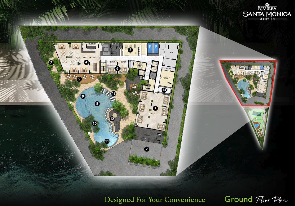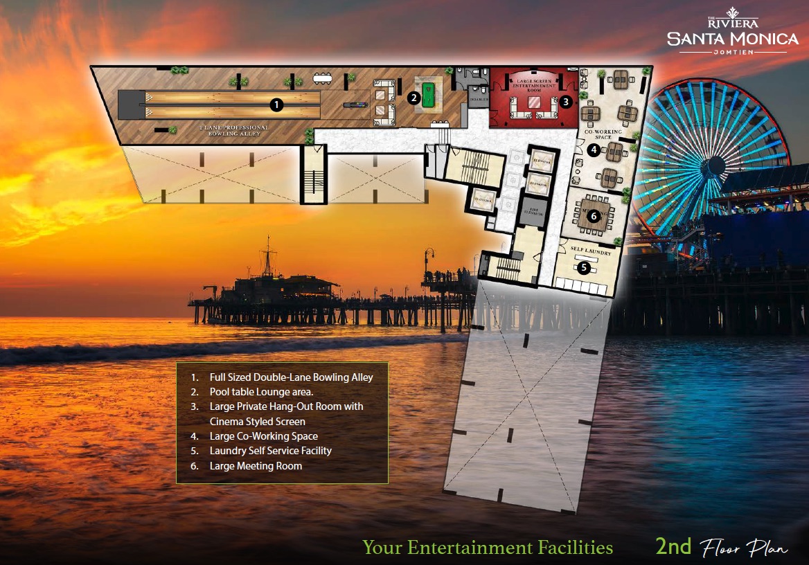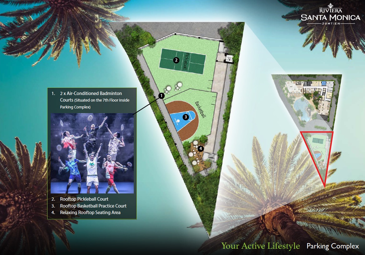 Ривьера Санта Моника расположен на участке недалеко от пляжа с удобным доступом к Сукхумвит и Джомтьен Бич 2-й Роуд.