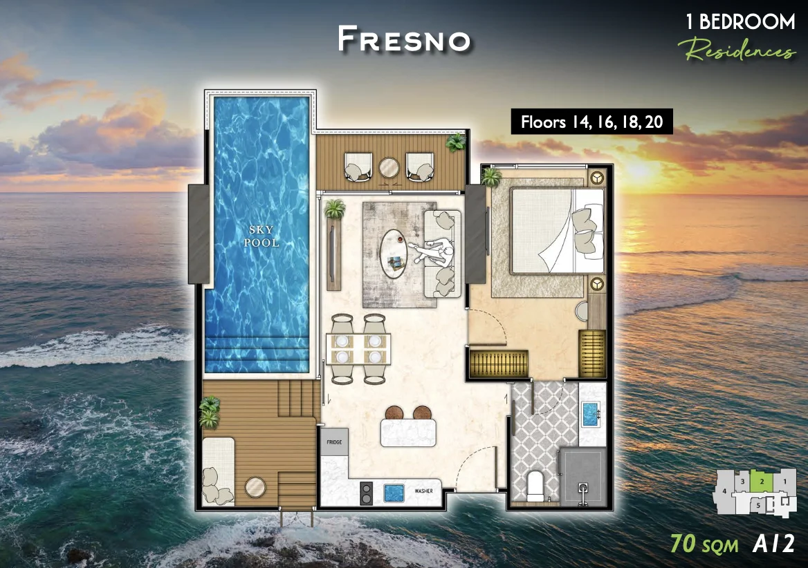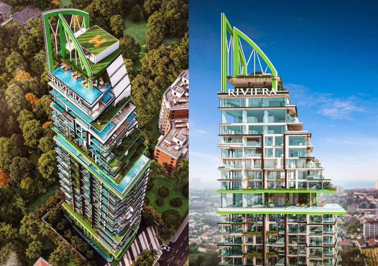 Построено компанией Riviera Group, известной своими отмеченными наградами элитными проектами и постоянным качеством. Все резиденции обставлены современной высококачественной отделкой и мебелью.Роскошные удобства с уникальными предложениями, такими как площадка для пиклбола на крыше, симулятор игры в золото и пейзажные бассейны с панорамным видом на море.